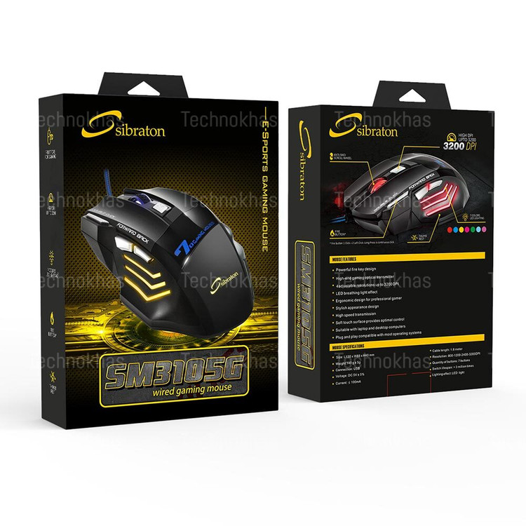 موس گیمینگ سیم دار Sibraton مدل SM3105G با ظاهری منحصر بفرد، جذاب و فانتزی طراحی گرافیکی و ترکیب با بک لایت نوری هفت رنگ مخصوص بازی و عملکرد های روزانه یک گزینه فوق العاده برای گیمرهای حرفه ای و دوستداران بازی های رایانه ای است.