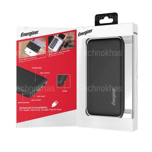 پاوربانک UE10064 از سری پاوربانکهای 10000 میلیآمپری کمپانی قدرتمند «انرجایزر» است. پاوربانک انرجایزر در راستای شارژرسانی به تلفنهای هوشمند، تبلتها و… تولید شده است. Energizer UE10064 با استفاده از 10000 میلیآمپر ساعت ظرفیت برای زندگی روزانه شما ساخته شده است. پاوربانک انرجایزر مدل UE10064 داراری درگاههای خروجی USB-A دوگانه است، در نتیجه شما میتوانید هم گوشی و هم تبلت یا هر دستگاه دیگری را همزمان با هم شارژ کنید. در حالی که گوشی شما به پاوربانک متصل است شما امکان شارژ دستگاه خود را با درگاه MicroUSB دارید. این پاوربانک دارای دو پورت USB خروجی و یک پورت USB Type-C ورودی و یک پورت MicroUSB ورودی است. قابلیت مدیریت انرژی در پاوربانکهای Energizer نیروی ورودی و خروجی دستگاهها را چک میکند و در برابر پرش ولتاژ مقاوم است و مقدار انرژی مورد نیاز را به دستگاه میفرستد تا دستگاه شما آسیب نبیند.