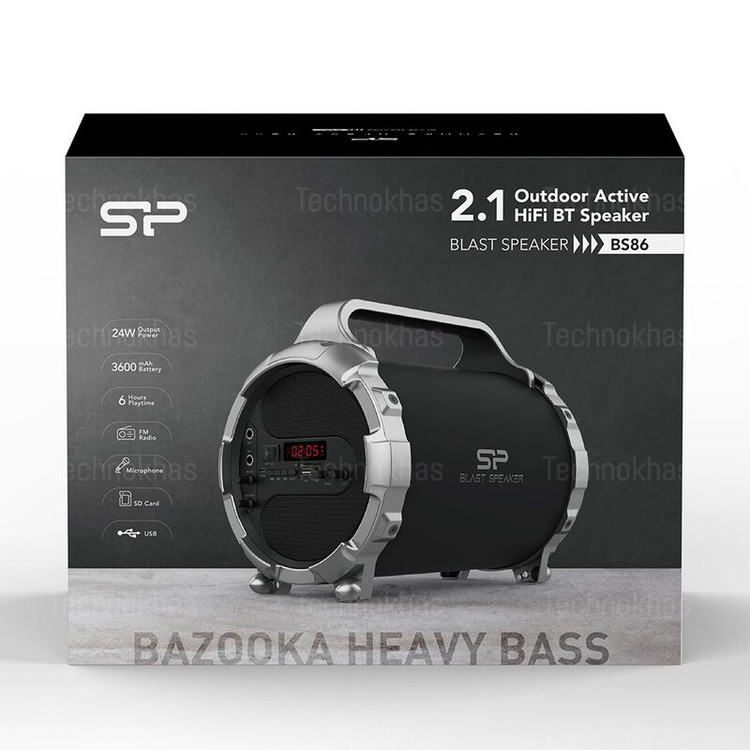 اسپیکر قابل حمل مدل BS86 توسط برند معتبر سیلیکون پاور به صورت استوانه ای شکل در قالب بدنه ای از پلاستیک سخت ABS و PVC ساخته شده است که مقاومت مناسبی را در برابر صدمات احتمالی مانند ضربه و فشار از خود نشان خواهد داد. روش های اتصال متقاوتی از جمله اتصال باسیم و بی سیم جهت دسترسی به آرشیو آهنگ ها و فایل های صوتی برای این دستگاه پخش کننده در نظر گرفته شده است، نحوه اتصال بی سیم از طریق بلوتوث نسخه ۵٫۰ به گوشی موبایل، لپ تاپ و دیگر گجت ها تا شعاع ۱۰ متری انجام می شود و اتصال باسیم آن نیز به دستگاه های سازگار از طریق رابط جک صوتی ۳٫۵ میلی متری و کابل AUX برقرار می گردد. همچنین پورت USB برای اتصال فلش مموری و درگاه کارت حافظه جهت ورود رم MicroSD بر روی بدنه تعبیه شده است. نورپردازی داخلی جذاب و آبی رنگ برای این دستگاه در نظر گرفته شده که زیبایی و مدرن بودن آن را در هنگام پخش موسیقی دو چندان جلوه می دهد. نمایشگر LED و کلیدهای فیزیکی متنوع به منظور مدیریت موسیقی، تنظیم ولوم، نورپردازی و … نیز بر روی بدنه وجود دارد.