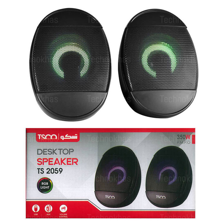 اسپيکر دسکتاپ TS 2059 به صورت باسيم طراحي شده که به کمک آن ميتوانيد به موسيقي مورد علاقهي خود گوش کنيد. اسپيکر 2059 تسکو با استفاده از خروجي AUX صدا به کامپيوتر، لپتاپ، موبايل، تبلت و ديگر لوازم از اين قبيل که به درگاه 3.5 ميليمتري مجهز باشند متصل خواهد شد. وضوح صدا در اين اسپيکر معادل 80dB بوده و داراي دو درگاه خروجي هدفون ، ورودي ميکروفون و دکمه چرخشي جهت تنظيم ميزان صدا مي باشد. همچنین منبع تغذيه آن USB کامپیوتر یا لپ تاپ می باشد ، طراحي این محصول به گونهاي است که به راحتي روي ميزکار قرار ميگيرد و از آن ميتوان براي کامپيوترهاي دسکتاپ و لپ تاپ استفاده کرد.