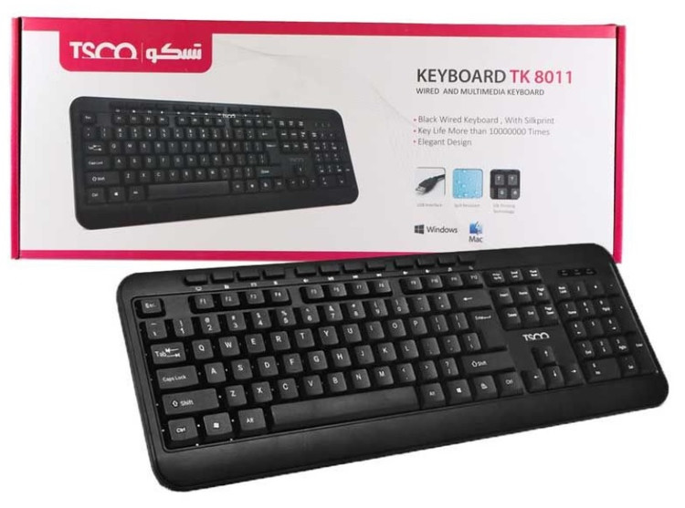 کیبورد تسکو مدل TK8011 یک کیبورد با کیفیت است که می تواند انتخاب مناسبی برای شما باشد. این کیبورد از طریق پورت USB به کامپیوتر شما متصل می شود و نیاز به نصب هیچگونه نرم افزاری ندارد. با طول کابل 1/8 متر، به راحتی می توانید از آن استفاده کنید. این کیبورد در برابر رطوبت و نفوذ گرد و غبار مقاوم است.